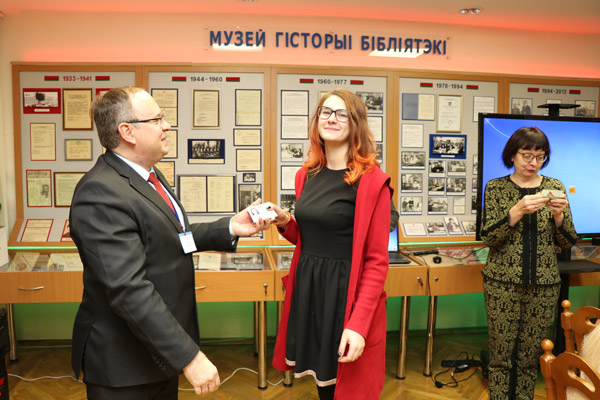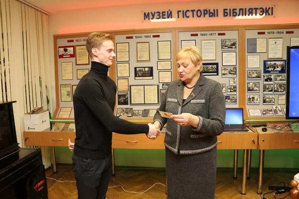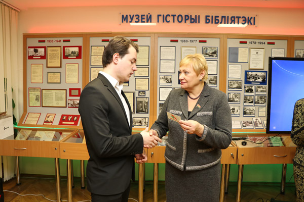 В завершении мероприятия, директор ГУ «Президентская библиотека Республики Беларусь» Квачан С.И. и депутат Палаты представителей Национального собрания Республики Беларусь Климович Н.А. вручили билеты новым членам РОО "Белая Русь".